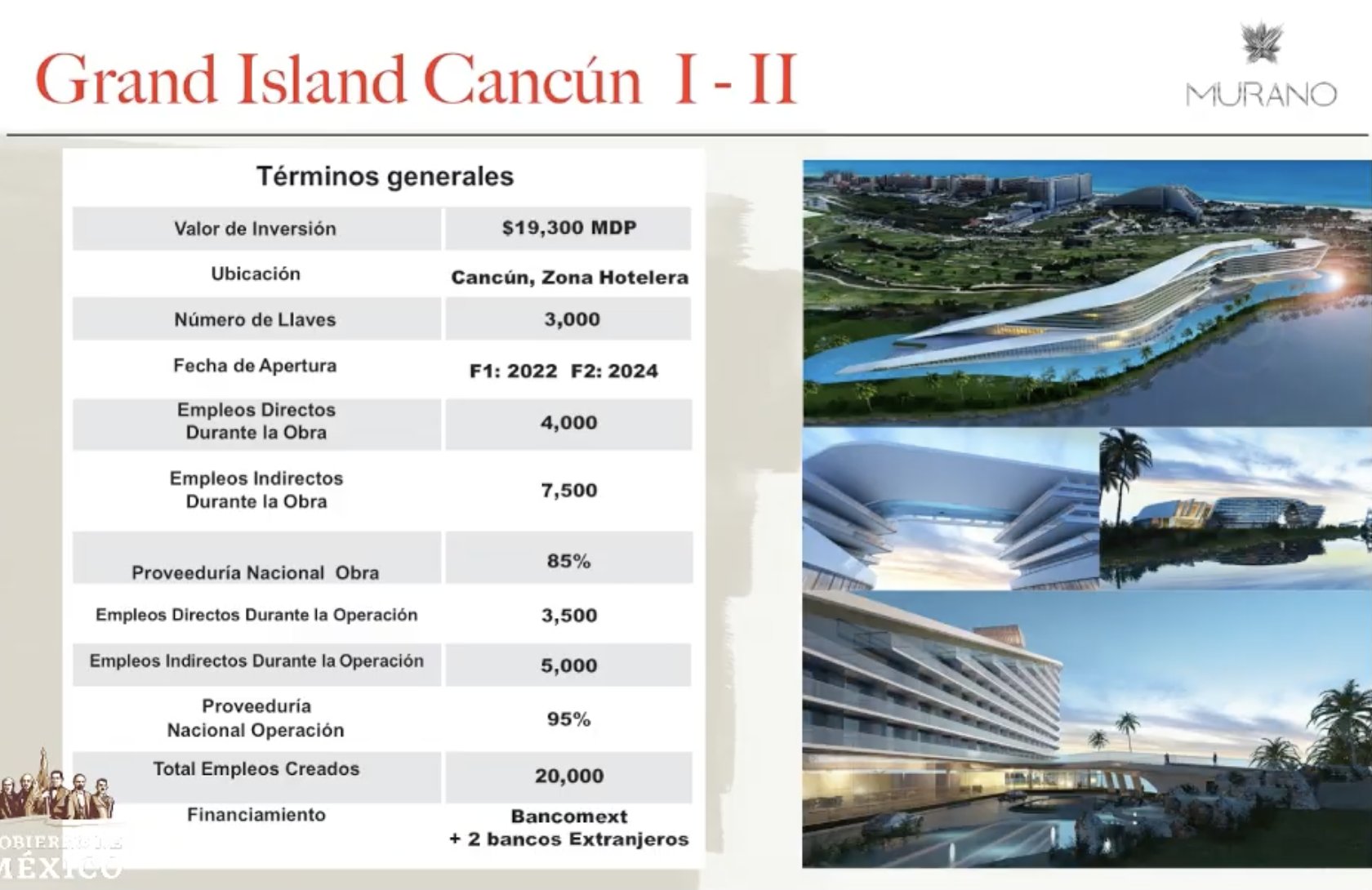 Por otra parte, la Secretaría de Turismo presentó un proyecto de infraestructura que se realiza en la zona hotelera de la región y se conoce como Grand Island Cancún, el cual tiene un valor de inversión de 19 mil 300 millones de pesos.