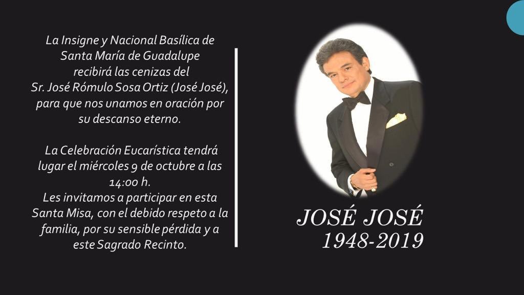Respecto al costo de la ceremonia religiosa en honor a José José que se llevó a cabo en la Basílica de Guadalupe, esta habría tenido un costo de 3 mil pesos, principalmente si es que se optó por el servicio de precio más elevado.