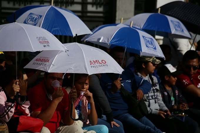 Partidos políticos gastan 92 mdp en gorras, sombrillas y tortilleros