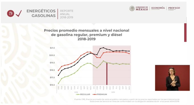 Continuando con su mensaje, el titular de la Profeco destacó que en cuanto al resultado en el tema de Diésel y gasolinas, a la fecha ha habido una estabilidad en los precios sin presencia de incrementos, tal y como lo prometió Andrés Manuel López Obrador.