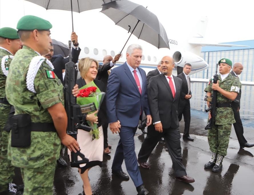 En la lluviosa mañana de este #Oct17 llegó al aeropuerto internacional Benito Juárez de la Ciudad de #México el Presidente de #Cuba @DiazCanelB, en la primera visita de un Jefe de Estado a la nación azteca desde que @lopezobrador_ inició su mandato, el 1ro/dic/ 2018. ?? ?? pic.twitter.com/wpNvqps0w6