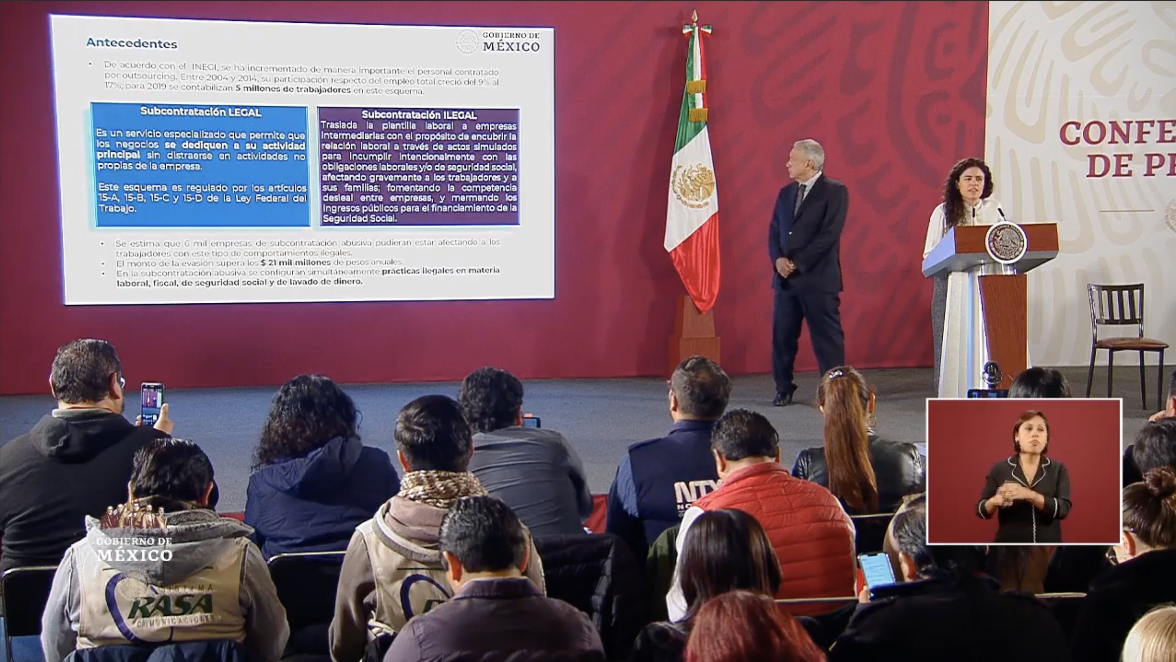 Al destacar que la subcontratación ilegal ha crecido a 5 millones de trabajadores que se encuentran en esta práctica, la secretaria subrayó que estos resultan afectados en la estabilidad de empleo, la falta de reparto de utilidades, así como en su antigüedad laboral.
