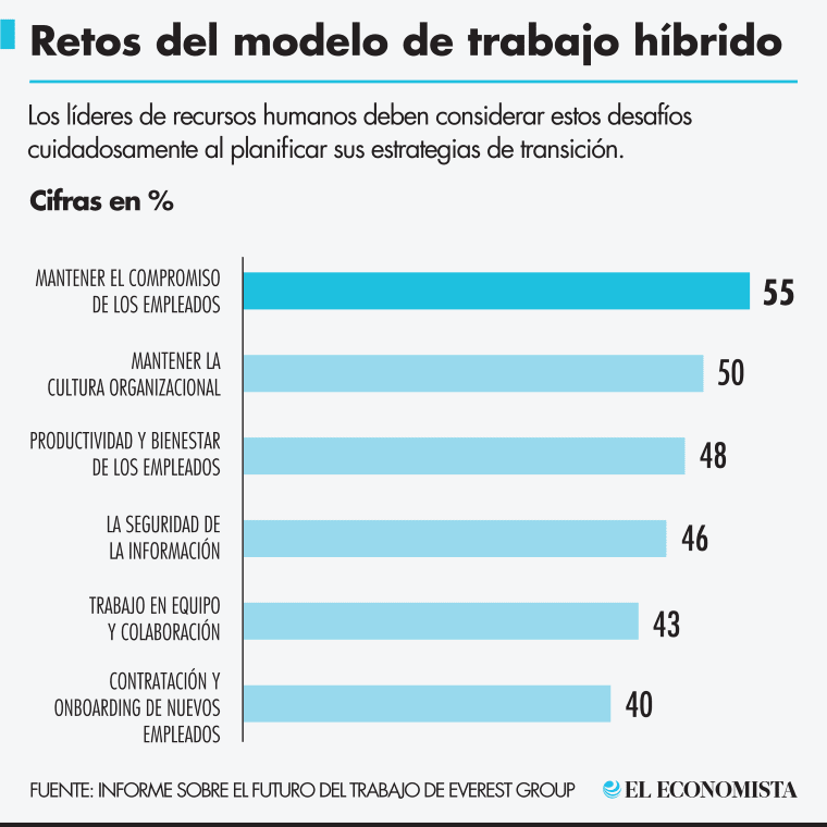 “Las organizaciones deberán planificar un futuro en el que una determinada proporción de empleados trabajará desde casa, algunos trabajarán desde la oficina y algunos alternarán entre estos dos modos, tal como lo prevé el modelo de trabajo híbrido. De hecho, el 92 % de las organizaciones está evaluando o planificando el cambio al modelo de trabajo híbrido”, señalan.
