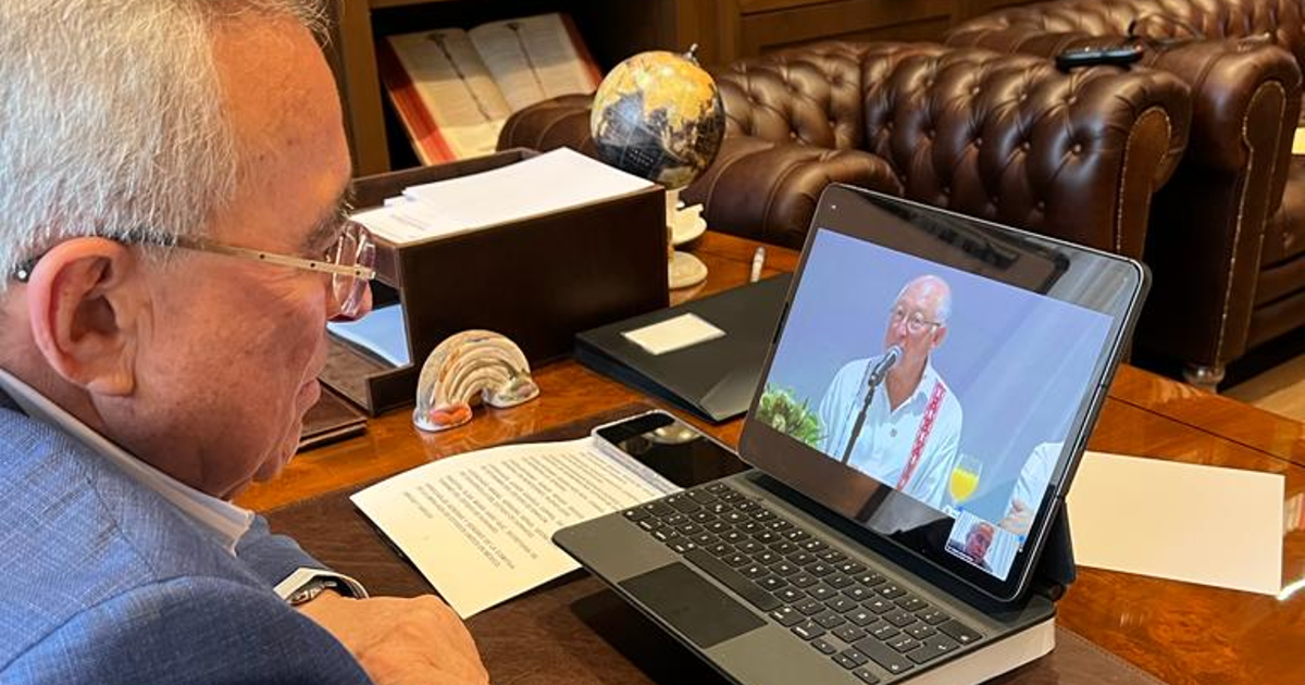 El embajador Ken Salazar asistió al Centro Internacional de Convenciones de Mazatlán, donde fue recibido por el secretario general de Gobierno, Enrique Inzunza Cázarez, con la representación personal del gobernador Rocha, quien por motivos de salud ya conocidos, participó desde su casa a través de una videoconferencia para formar parte de la reunión como si fuera de manera presencial.