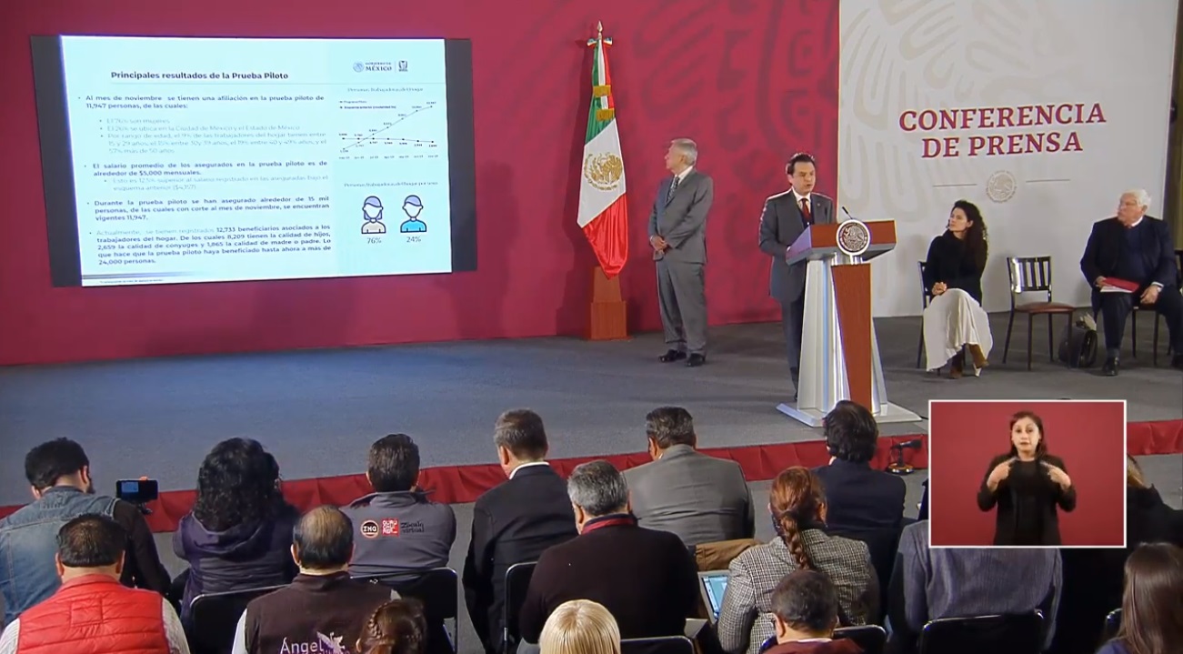 Para el 27 de febrero de este año, dijo Robledo, se aprobó el programa piloto de trabajadoras del hogar, el 1 de abril se dio inicio al registro, el 2 de julio se publicaron las reformas a la Ley del IMSS que permiten a las beneficiarias acceder al derecho de seguro social, mientras que el pasado 1 de octubre concluyeron los dieciocho meses de la prueba piloto.