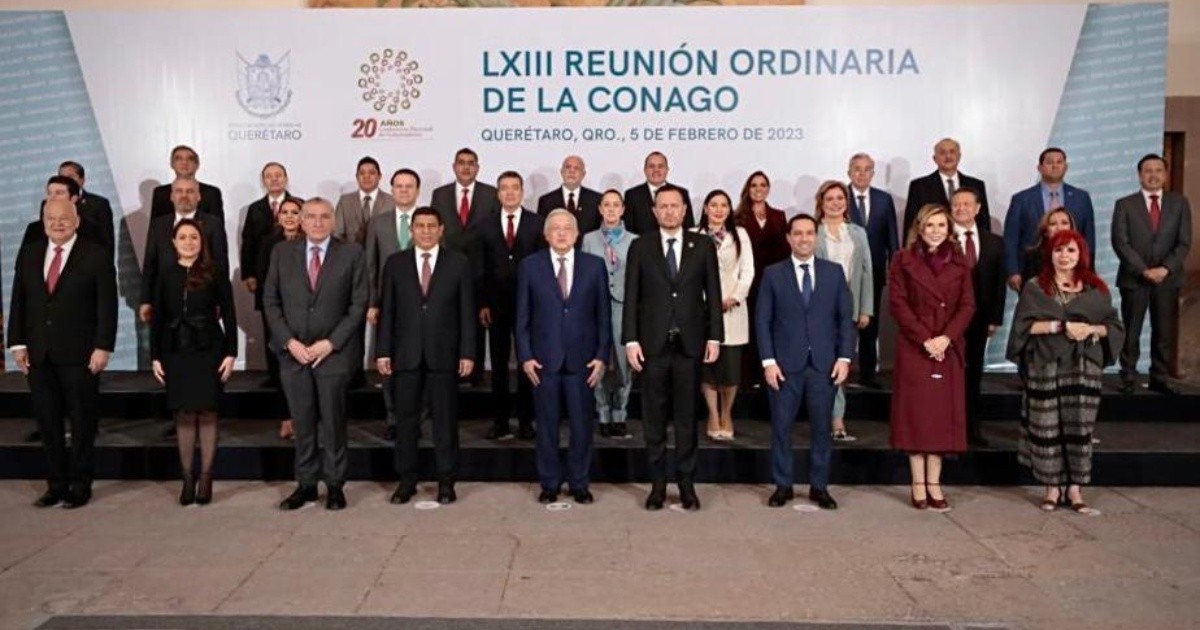 Santiago de Querétaro, Querétaro, a 05 de Febrero de 2023.- Desde la histórica Casa de la Corregidora que aglutinó a 18 mandatarios estatales en el marco de la LXIII Reunión Ordinaria de la Conferencia Nacional de Gobernadores (CONAGO), el Gobernador Rubén Rocha Moya comentó que uno de los primeros acuerdos obtenidos como resultado del consenso general, fue la instalación de una mesa de trabajo encabezada por Salomón Jara Cruz y Mauricio Vila Dosal, Gobernadores de Oaxaca y Yucatán respectivamente, actuales Presidente y Vicepresidente de Conago, para efecto de hacer una revisión integral de este foro permanente que busca fortalecer el federalismo mediante mecanismos democráticos, manteniendo pleno respeto de las instituciones de México.