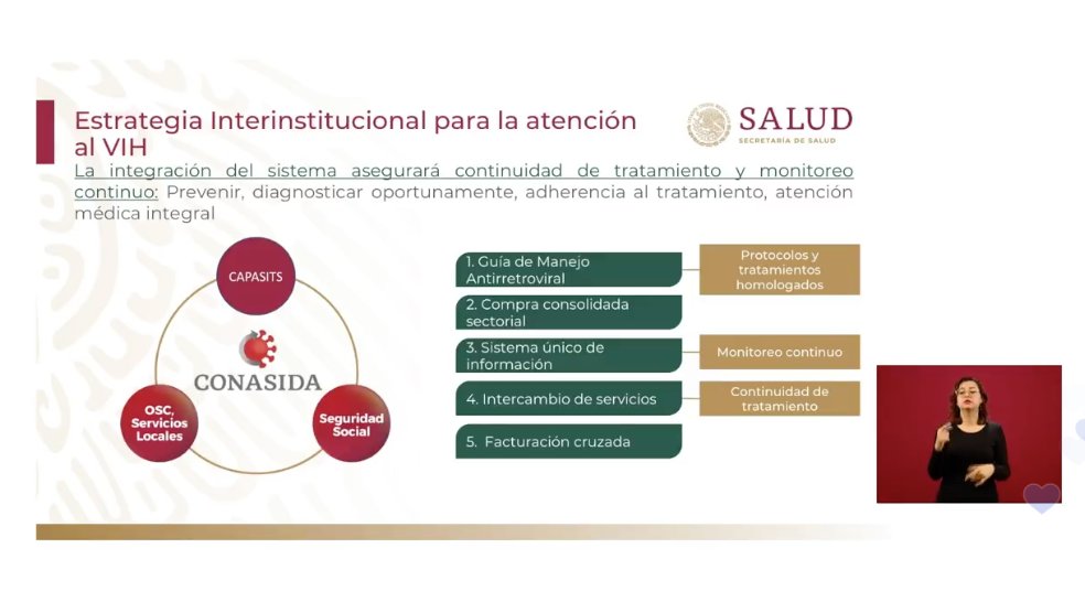 Asimismo, la SSA agregó que con esta estrategia se tomó la decisión de tener una integración de servicios por parte del Instituto Mexicano del Seguro Social (IMSS) en lo que se refiere a los tratamientos del VIH, esto luego de que se detectara que hay población no asegurada y población con seguridad social que se atienden en esta materia.